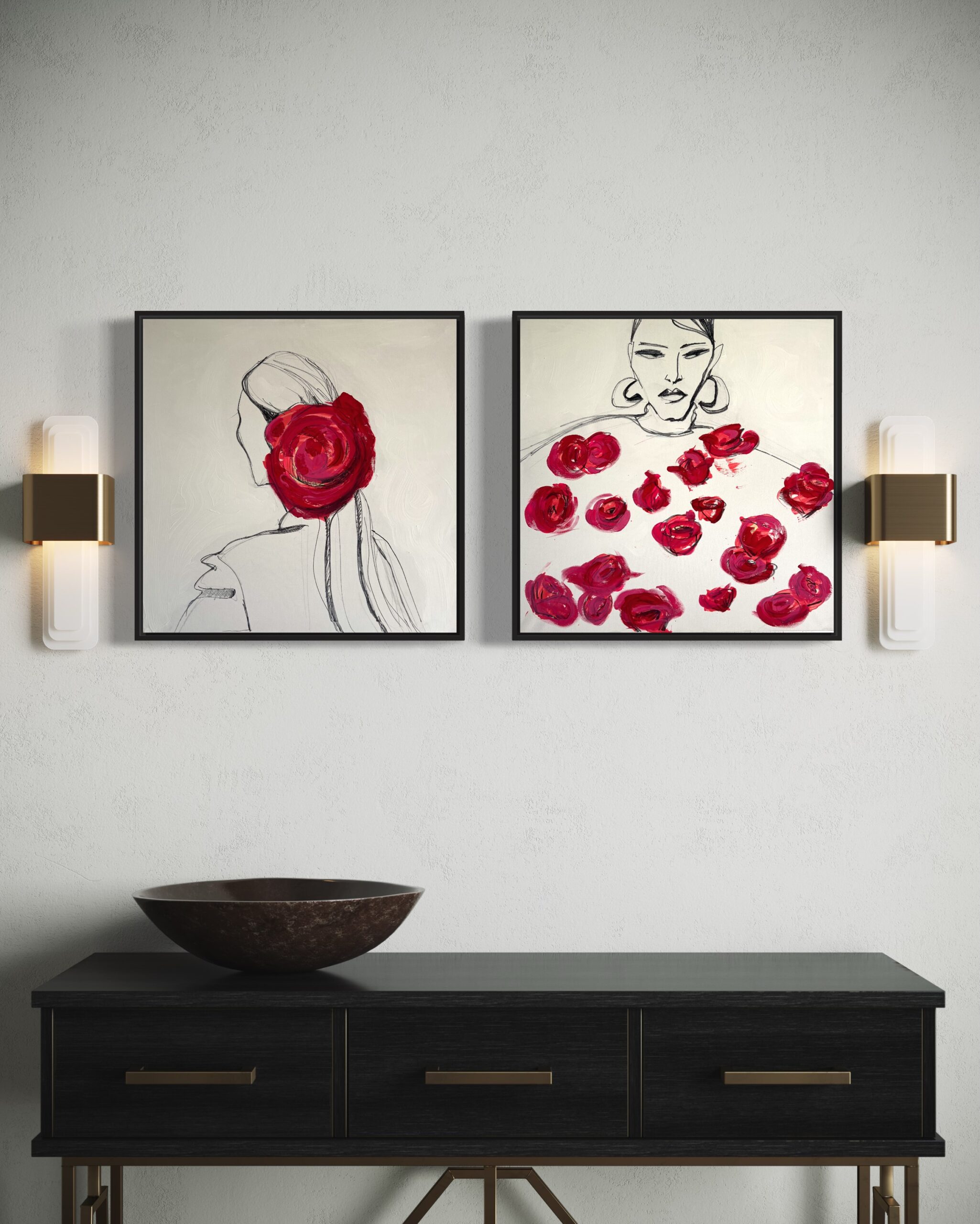 Besonders gerne tauchen in ihren Arbeiten florale Motive und Frauenfiguren auf, die sie frei und intuitiv aufs Papier oder die Leinwand bringt. Ihre Kunst wirkt spontan, verspielt und voller Energie – ein Zusammenspiel aus kräftigen Farben und einer leichten, skizzenhaften Handschrift, das sofort ins Auge fällt.
